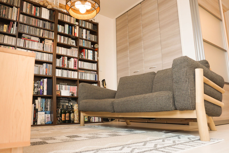 リビングタイニングには、音楽が趣味というご主人のコレクションするCDやギター、ポスターなどが並びます。モノ自体は多いのに、とてもスッキリと見えますね。今回、北欧テイストの白木を使った温かみのあるコーディネートでお部屋に統一感をもたせることでものの多さを感じさせないのではないでしょうか。