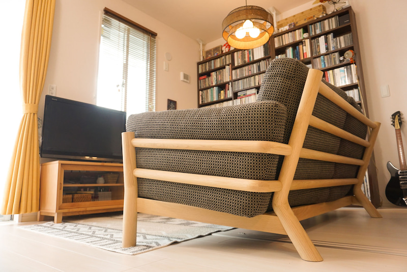 背面の姿を気に入っていただき選んでいただいた、カリモク ニュー スタンダードのキャストールソファー 2人掛。意外とソファ選びのときに見落としがちな後ろ姿。お部屋の中心にレイアウトする場合は、後ろ姿まで気を使ってソファ選びをしたいところです。