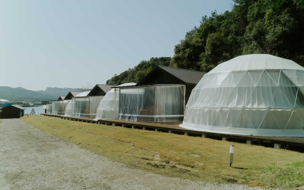 大小の島が点在する熊本県上天草市。その島の一つ前島。その前島に位置する、多種多様なアクティビティが体験可能な宿泊施設、「SEA CRUISE(シークルーズ)グランピング 熊本天草」。愛犬と滞在可能なお部屋や、小さなお子様連れでも安心のファミリールーム、グループでもお楽しみいただけるドーム型テントはご滞在の仕方をお選びいただける安心のグランピング施設。全棟個別にリビング、キッチン、バスルーム・トイレも完備。安心、安全、快適に豪華版キャンプのグランピングをお楽しみいただける施設です。