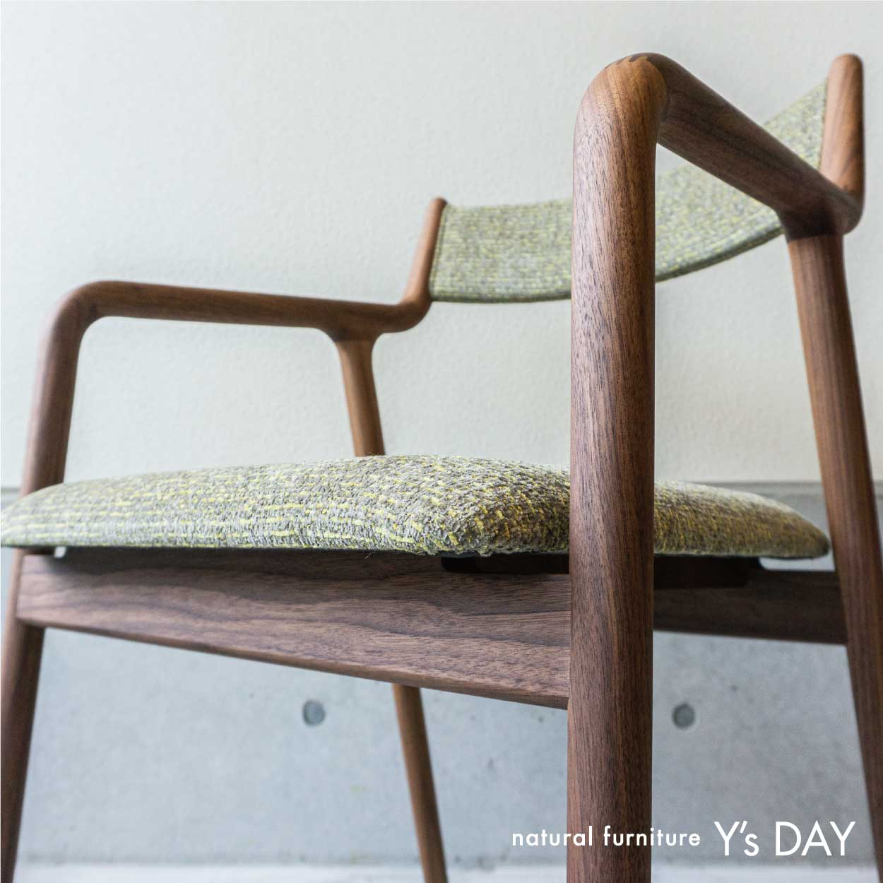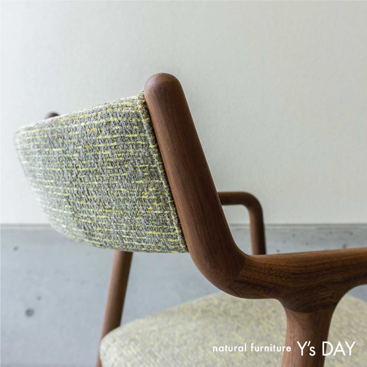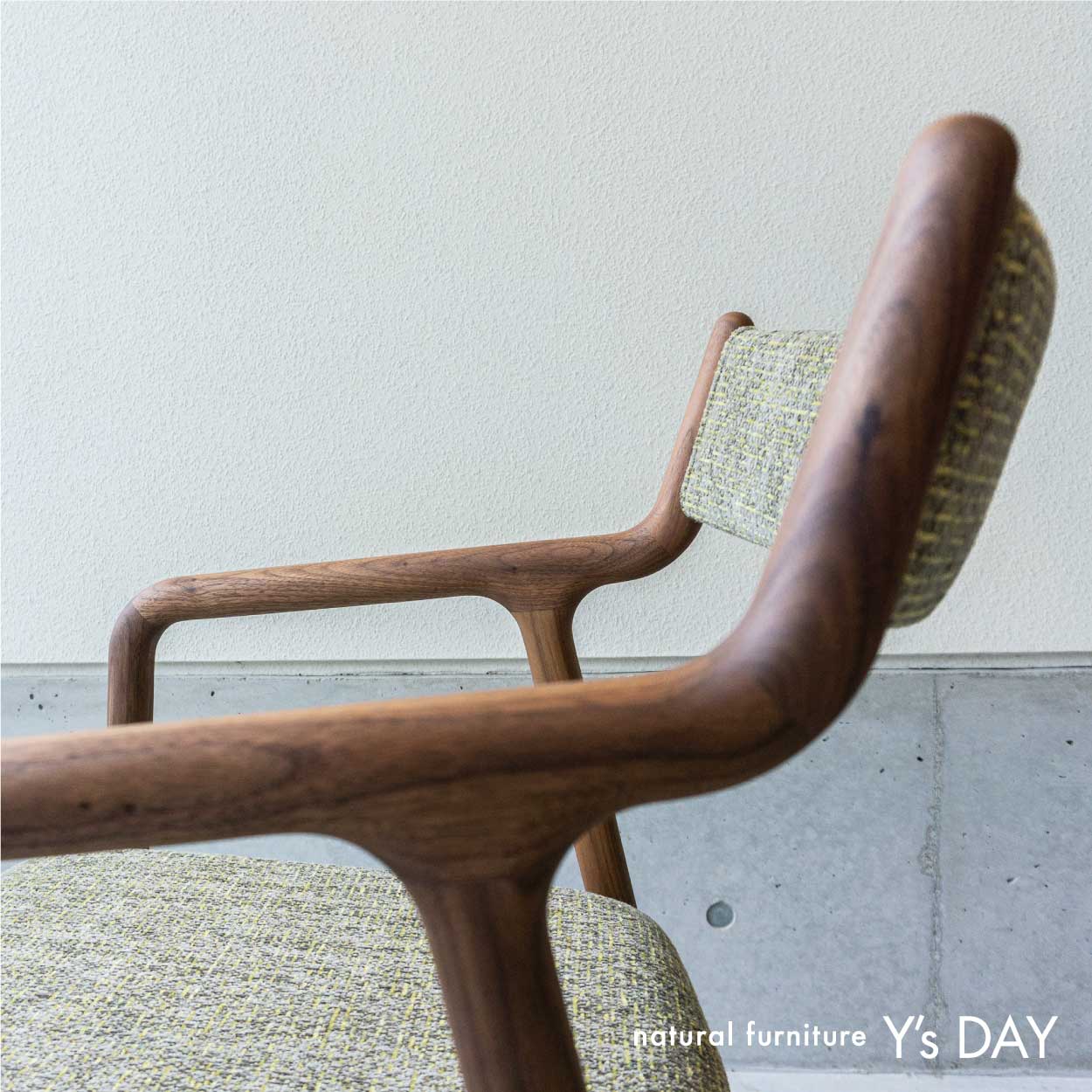 強度のためだけではなく、デザインのポイントになっているフィンガージョイント。このイスでは四角と丸が融合しています。脚先では丸い断面が徐々にアームの部分では丸四角になり手にやさしい触り心地を与えます。そして背で丸に戻る。こんなところにも胡椒(=pepe)のような技術の隠し味が効いているのです。