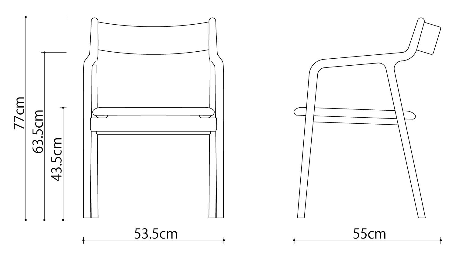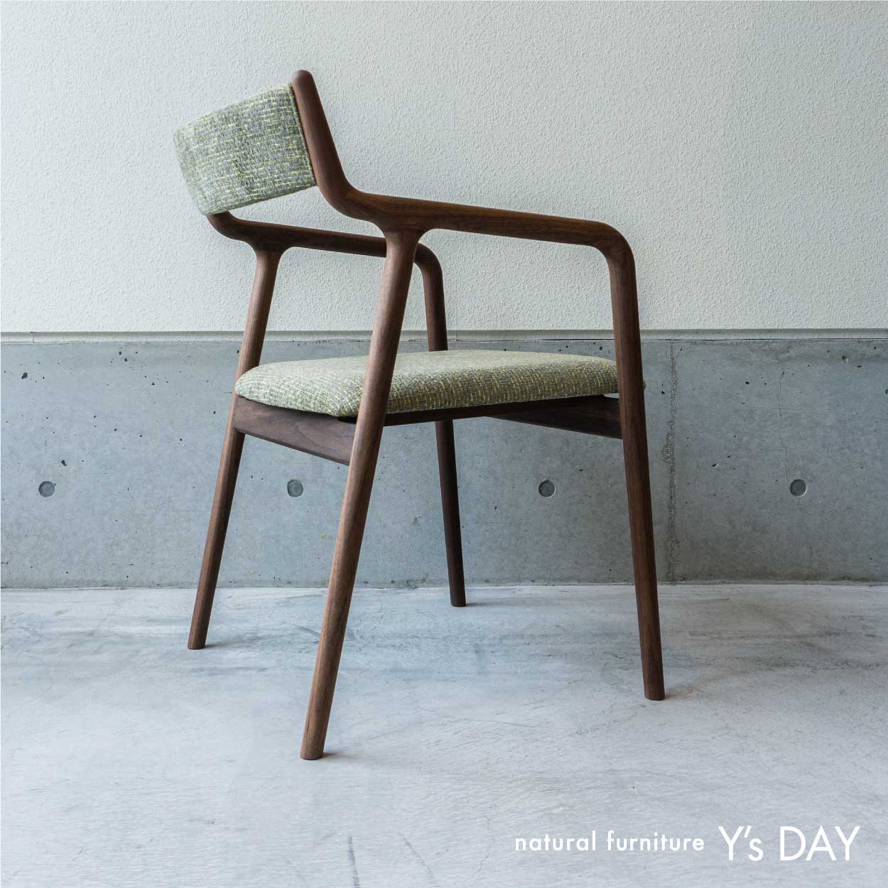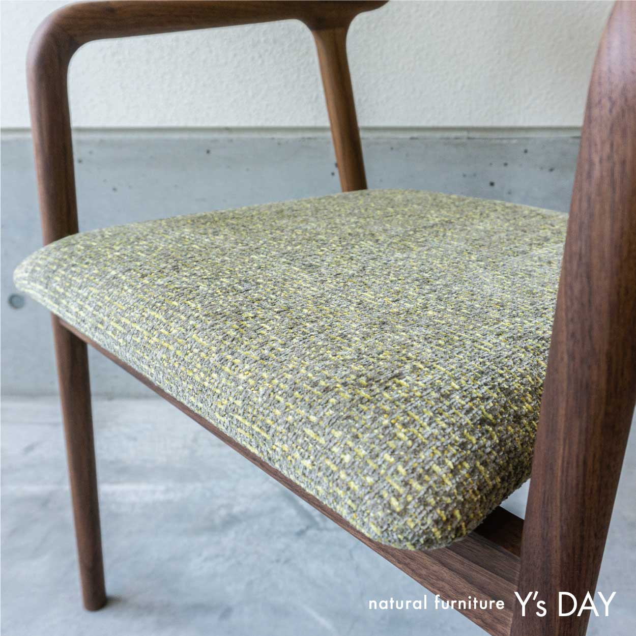 強度のためだけではなく、デザインのポイントになっているフィンガージョイント。このイスでは四角と丸が融合しています。脚先では丸い断面が徐々にアームの部分では丸四角になり手にやさしい触り心地を与えます。そして背で丸に戻る。こんなところにも胡椒(=pepe)のような技術の隠し味が効いているのです。