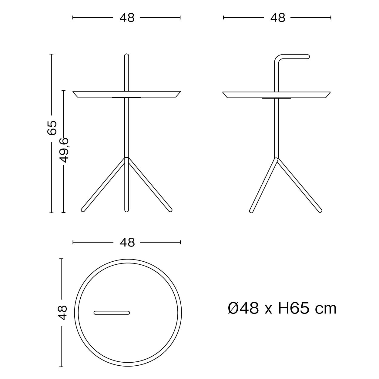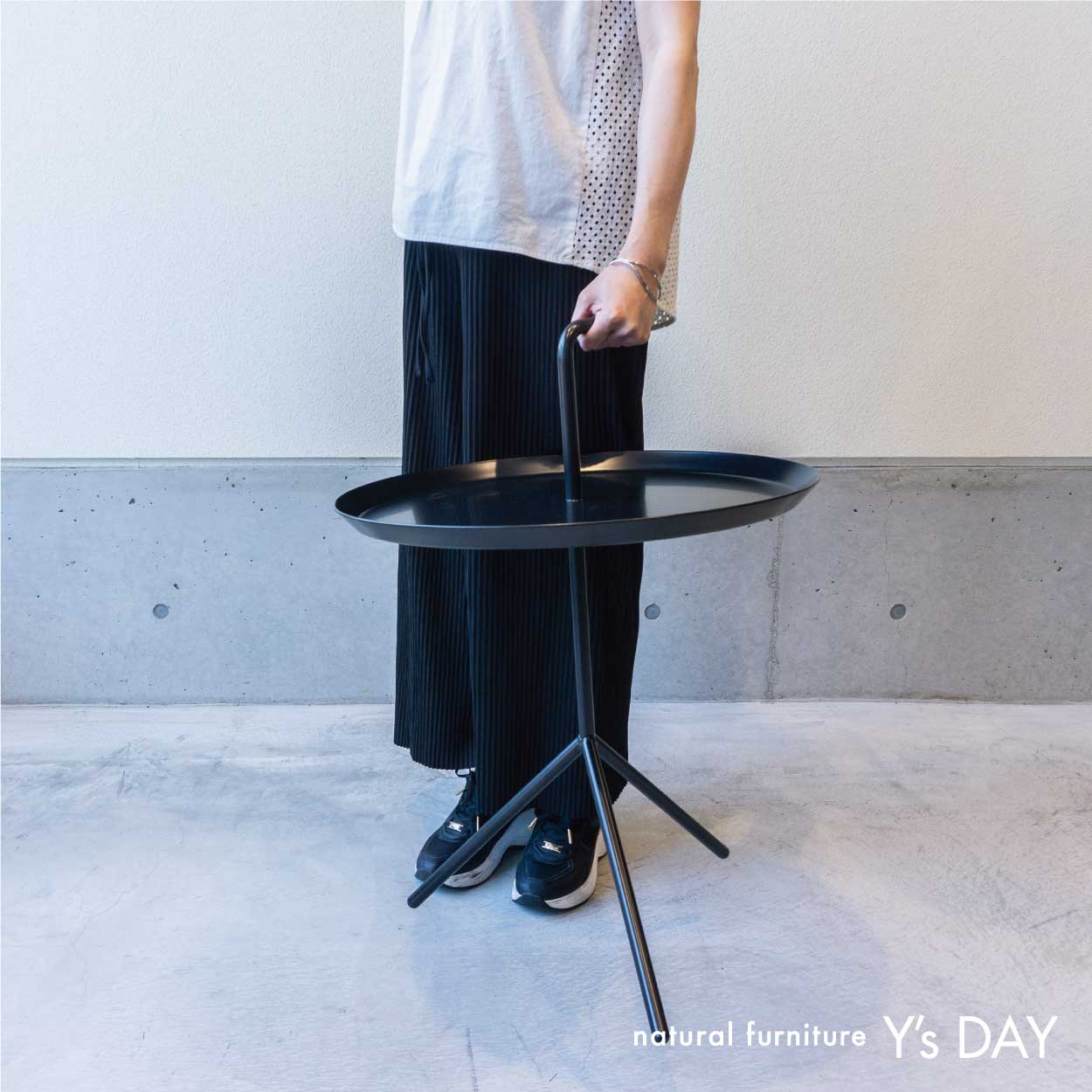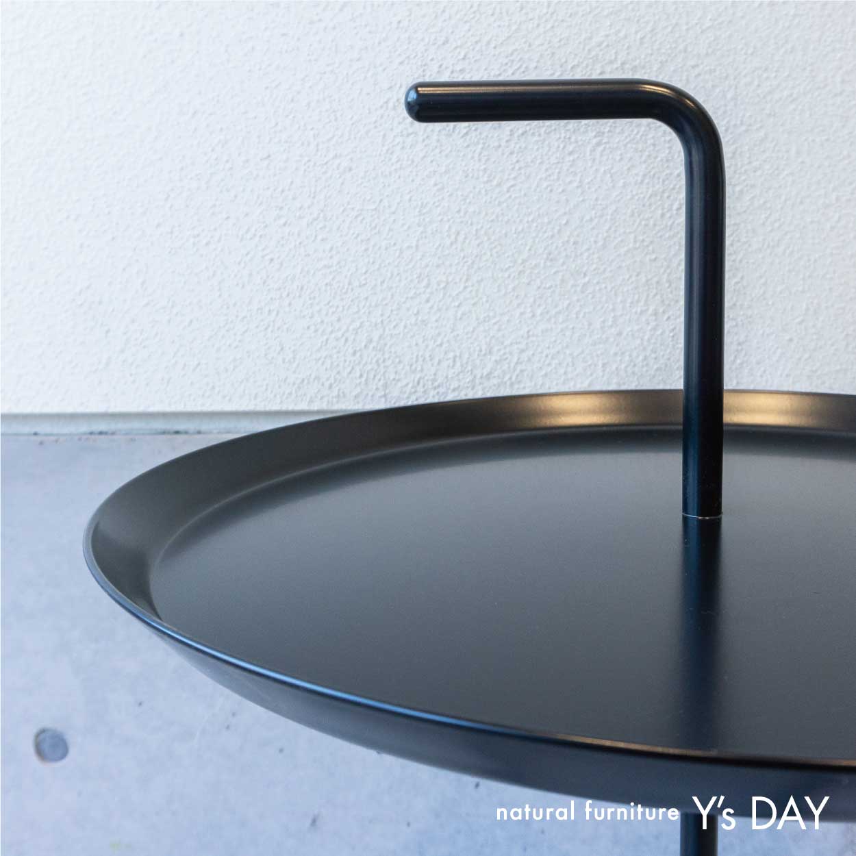 DLMと親しみを込めて略称で呼ばれるこの金属製のテーブルは、部屋から部屋へ運ぶ時に便利なハンドルが付いたデザインになっています。