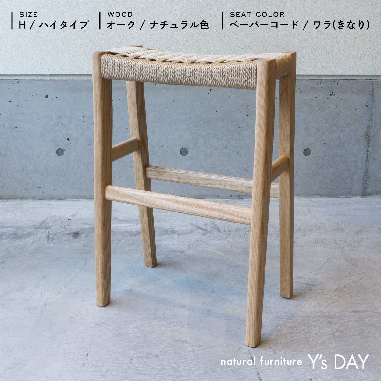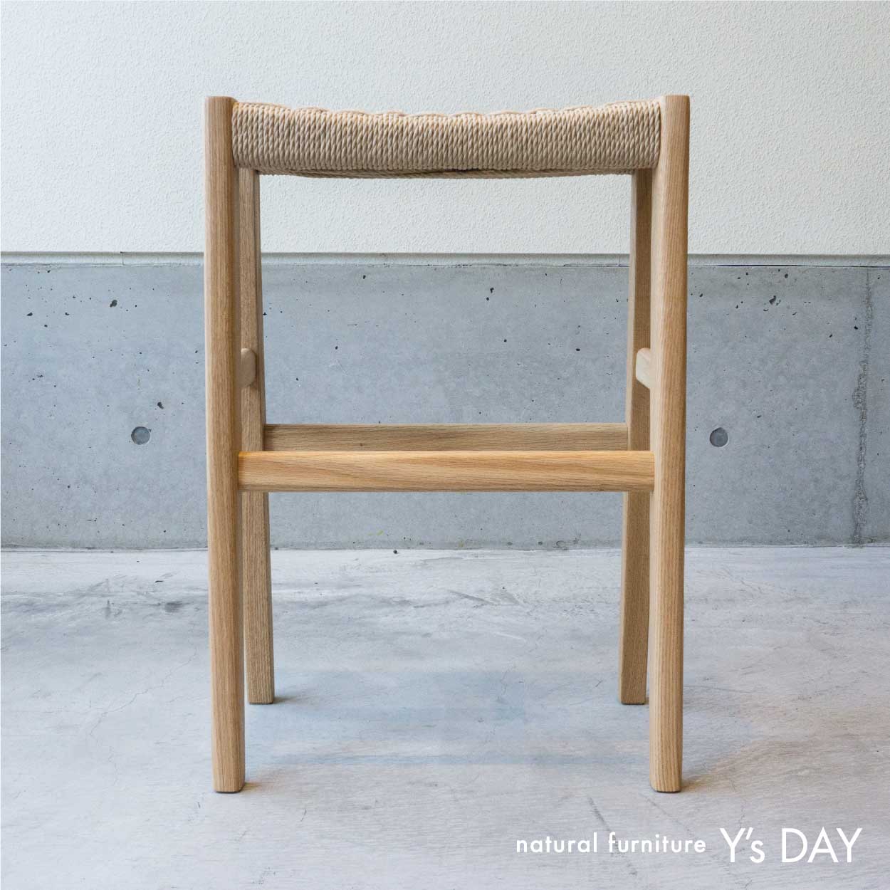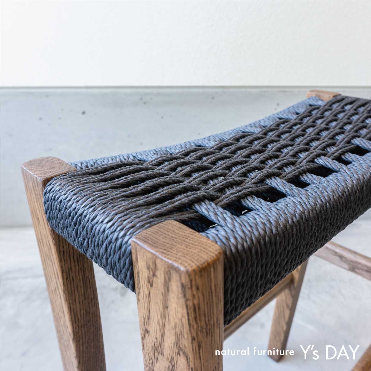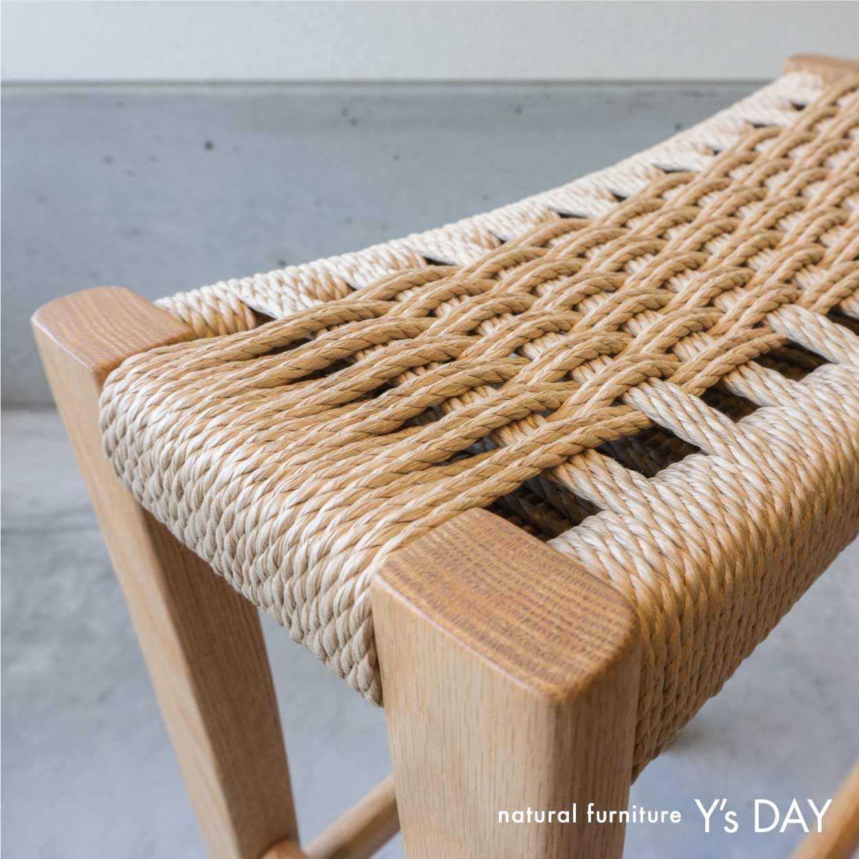 座面はペーパーコード張りです。おしりにフィットするように編み込まれています。経年変化により、ゆるみなどが出てきた場合も編み直しができます。