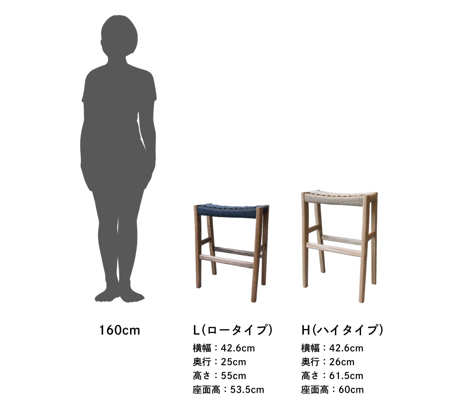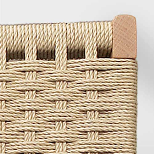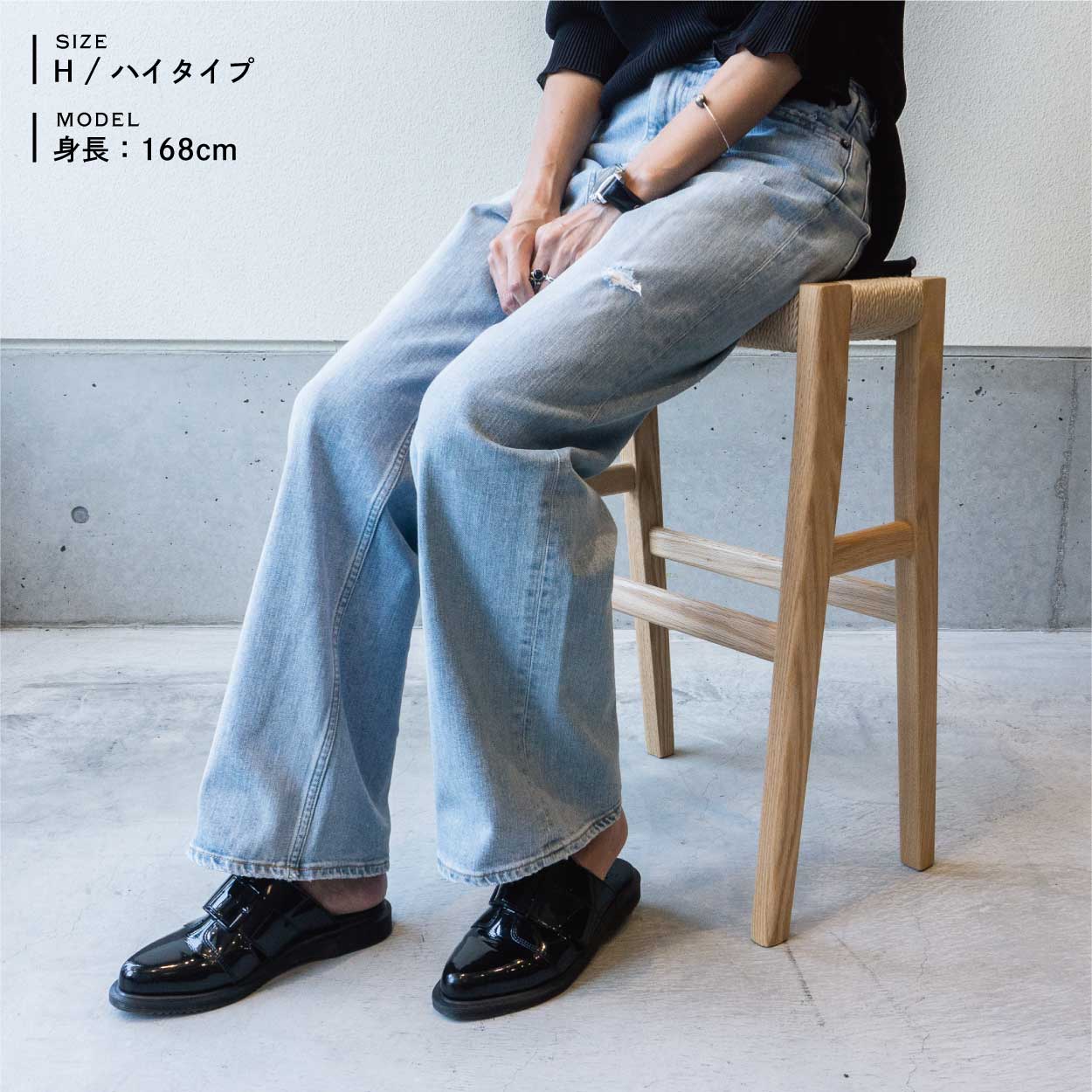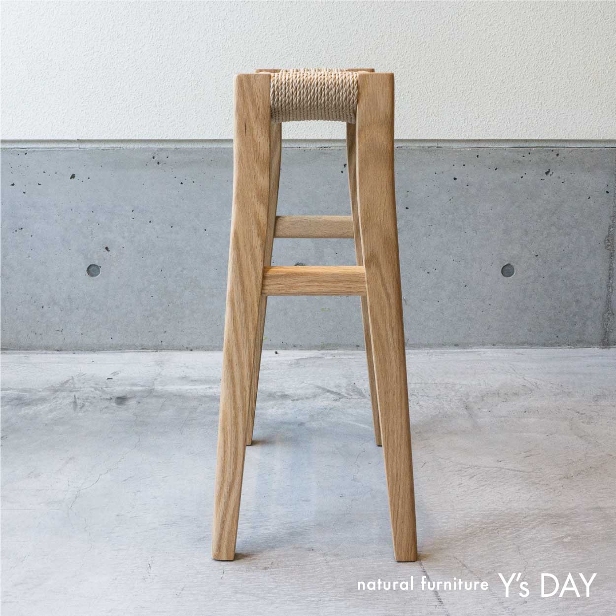 座面はペーパーコード張りです。おしりにフィットするように編み込まれています。経年変化により、ゆるみなどが出てきた場合も編み直しができます。