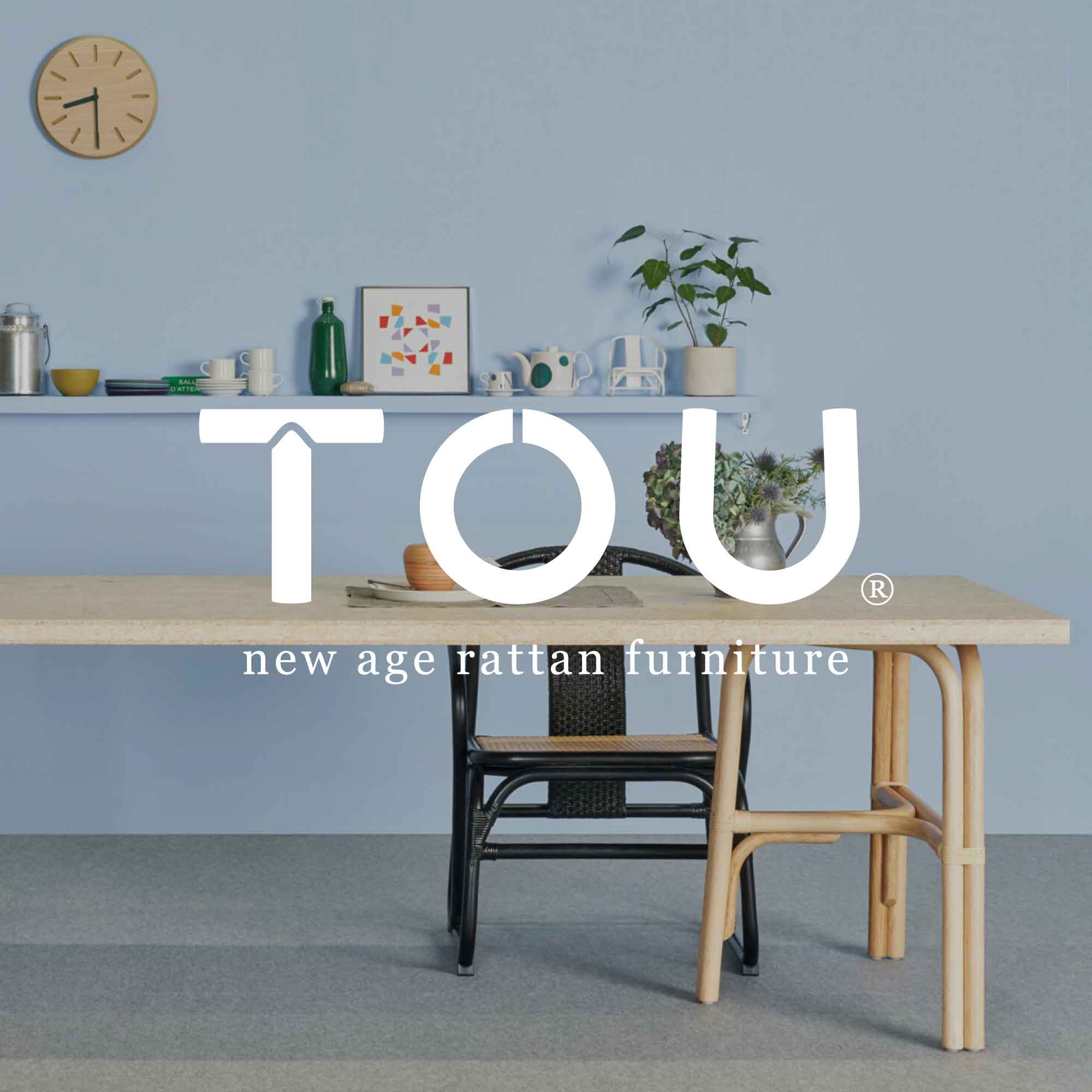 TOU(トウ)は日本で企画デザインし、インドネシアの家具産地チルボンの工場で生産されるラタン家具のブランドです。この工場では、かつて日本のラタン家具会社とつくりあげた技術と品質管理を受け継ぐ責任者のもとで製品が丁寧につくられています。現地で最高のラタンを手に入れ、ジャパンクオリティの確かな技術と品質で製品をつくることができる世界でも数少ない工場のひとつです。こうした技術的背景の上で、ラタン家具という古典的モチーフを現代空間に合わせ、使いやすさや耐久性、デザインをアップデートしています。