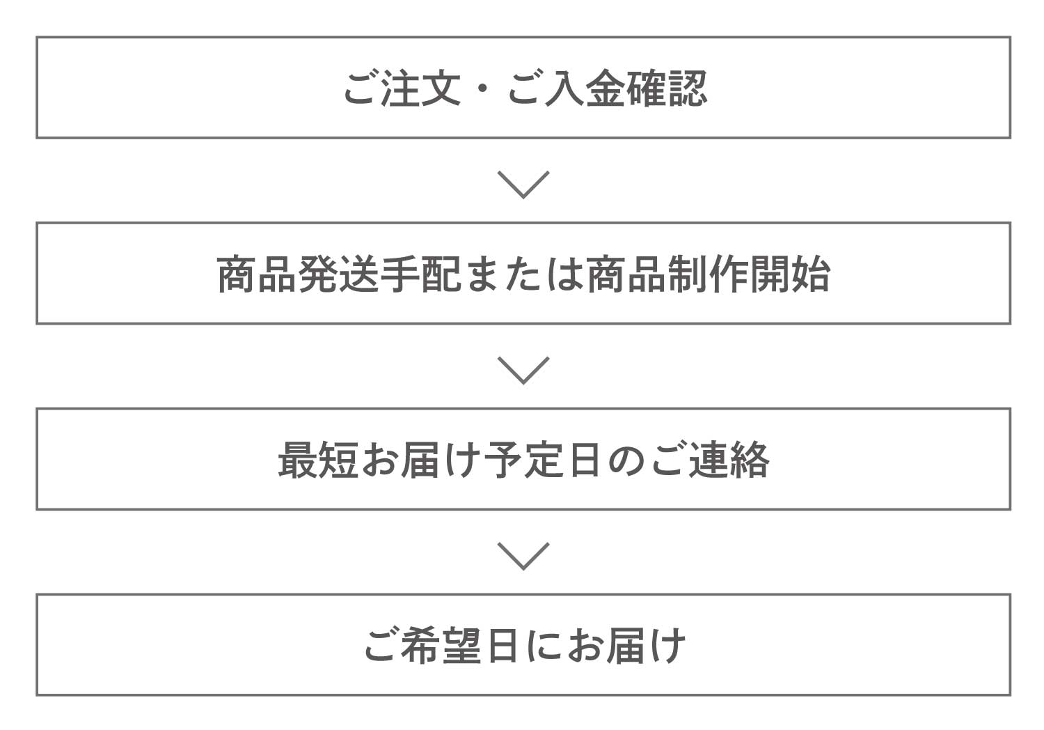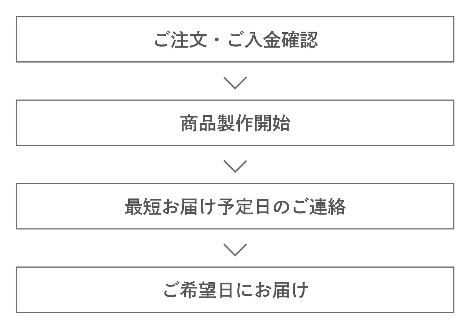 ご注文・ご入金確認後、商品の製作に入ります。納期の目安は、商品ページの商品情報の詳細をご確認ください。